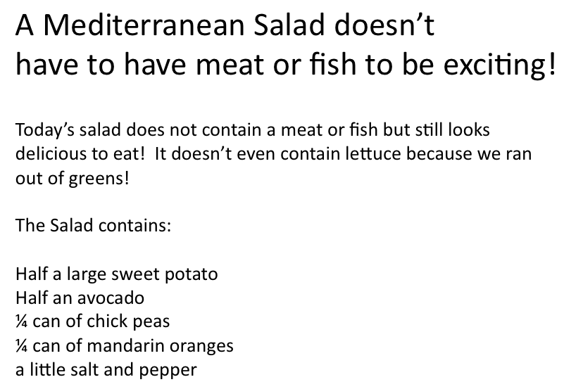 An Exciting Mediterranean Salad without Meat or Fish; September 24, 2015