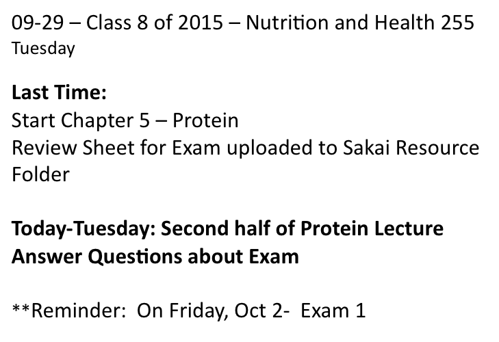 Class on Tuesday, September 29, 2015