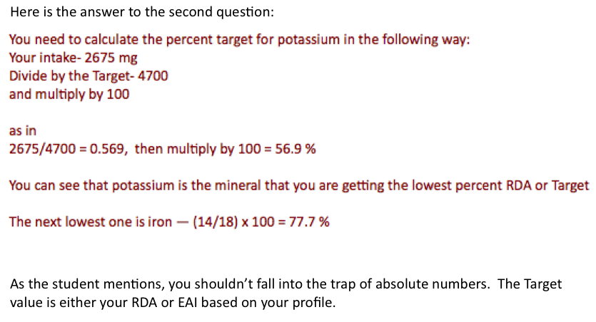 Questions for the Dietary Assignment, October 6, 2015