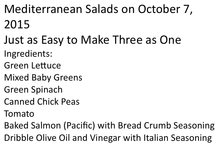 Mediterranean Salads for Lunch, October 7, 2015