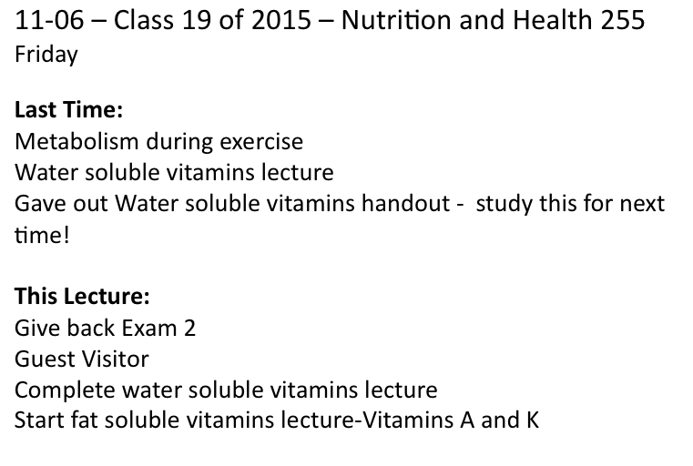 Fat Soluble Vitamins- Class on November 6, 2015