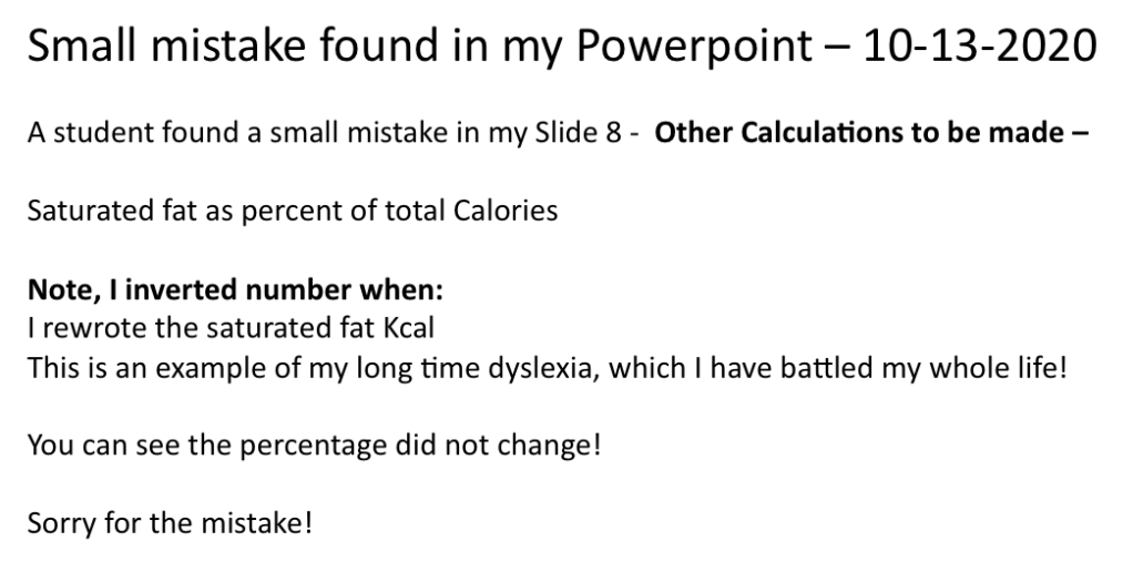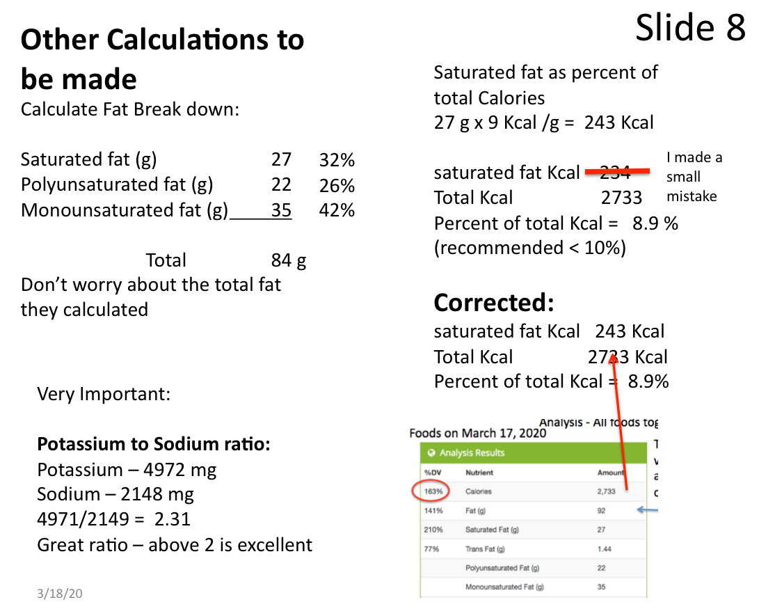 Question: Hi Professor, hope your day is going well. I was working on the diet assignment that’s due in a few days, and I have an issue with following some of your instructions, particularly your calculations from slide 8, these: