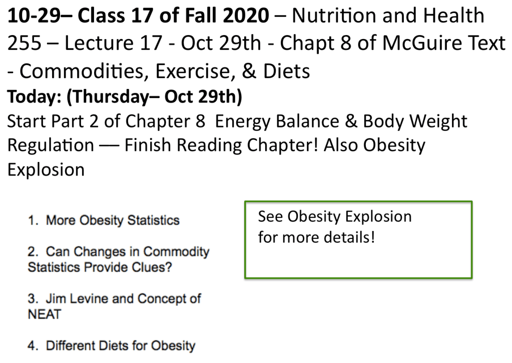 Class 17 – Nutrition and Health – Fall 2020 – Oct 29th – Finish Chapter 8 of McGuire Text – Commodities, Exercise, and Diets