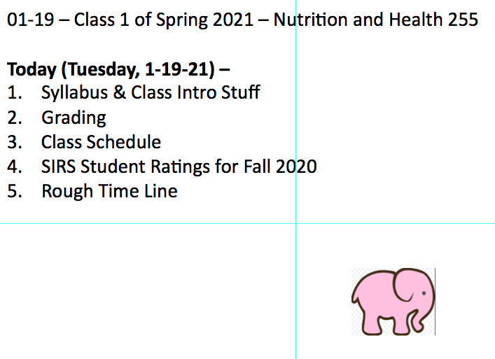 Class 1 – Nutrition and Health – Spring 2021 – January 19th – Introduction to Class