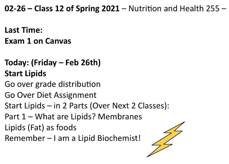Class 12 – Nutrition and Health – Spring 2021 – Feb 26th – Chapter 6 in McGuire – The Wonderful World of Lipids