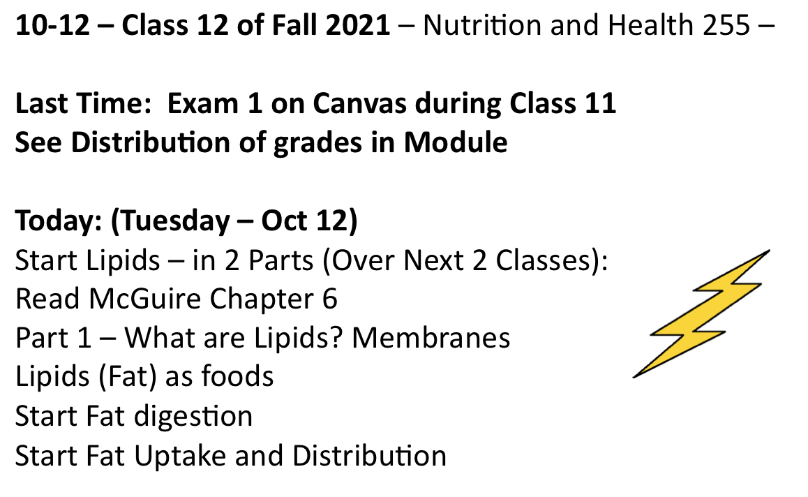Class 12 – Nutrition and Health – Fall 2021 – October 12th – McGuire Chapter 6 – START LIPIDS