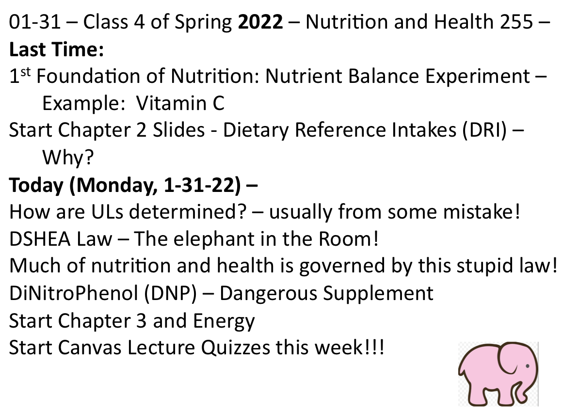 Class 4 – Nutrition and Health – Spring 2022 – January 31st – Chapter 3 in McGuire – Part 1 – Energy
