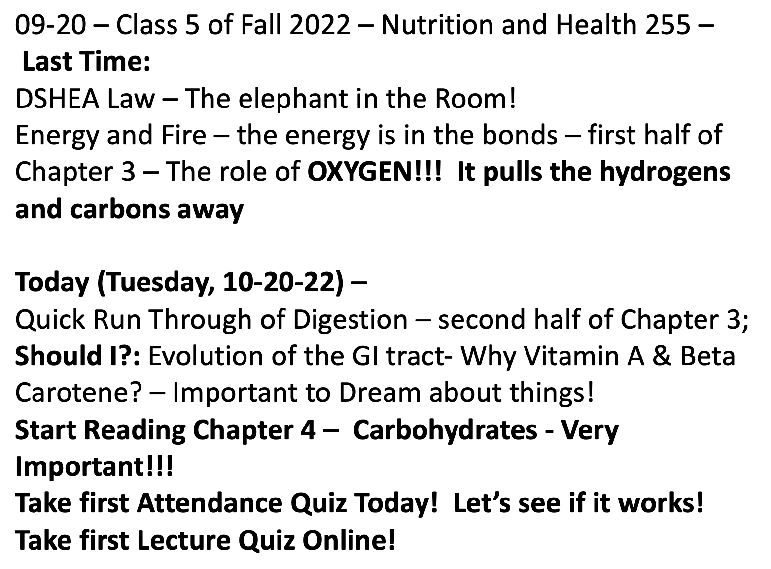 Class 5 – Nutrition and Health – Fall 2022 – September 20th – Chapter 3 Second Half in McGuire – Digestion!
