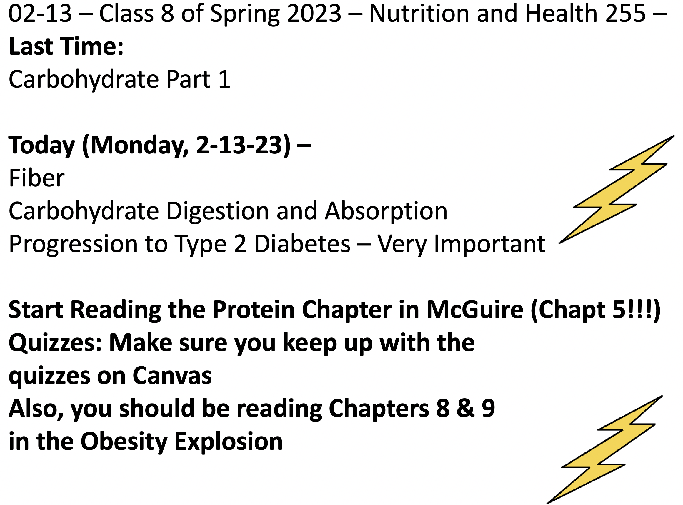 Class 8 – Nutrition and Health – Spring 2023 – February 13th – Finish Chapter 4 in McGuire – Fiber, Glucose Transport and Progression to Type 2 Diabetes