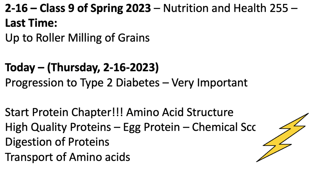 Class 9 – Nutrition and Health – Spring 2023 – February 16th – Finish Chapter 4 in McGuire – Start Chapter 5 – Protein