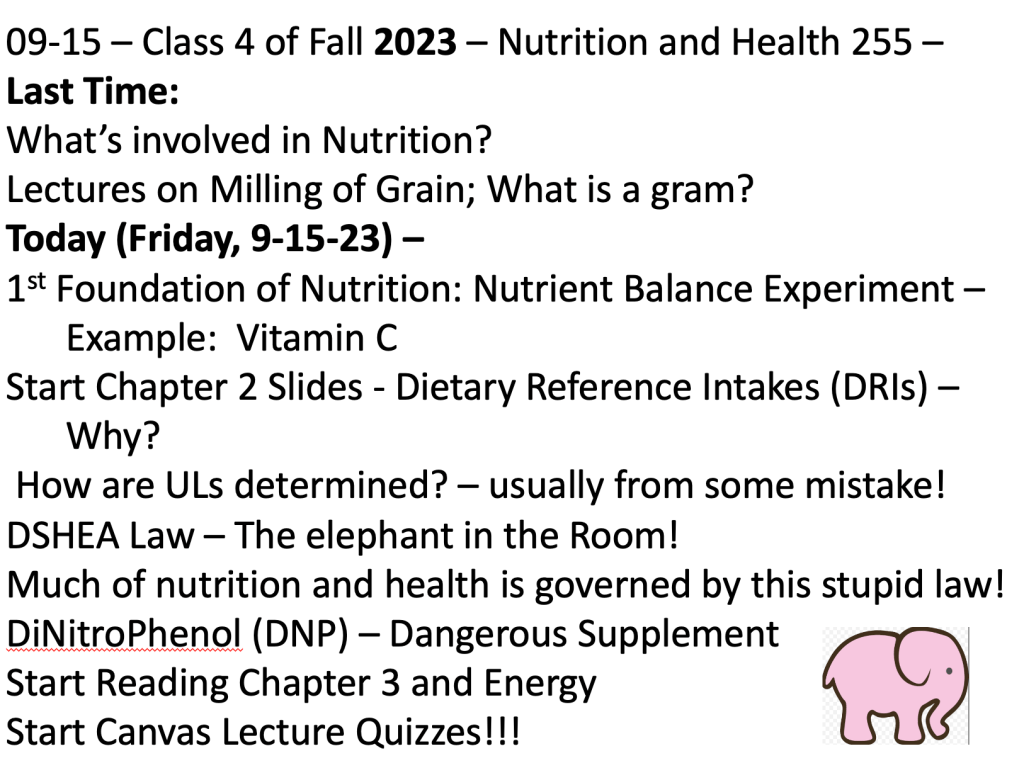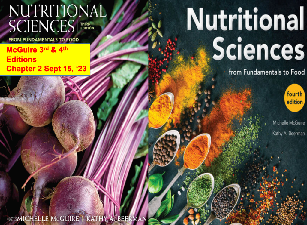 Class 4 – Nutrition and Health – Fall 2023 – Sept 15th – McGuire 3rd-4th Edition Chapter 2; DRIs; Nutrition Politics