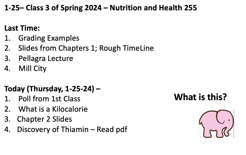 Class 3 – Third Class in Nutrition and Health – Spring 2024 – January 25th – McGuire Chapter 2 – What is a Kcal? The DRIs
