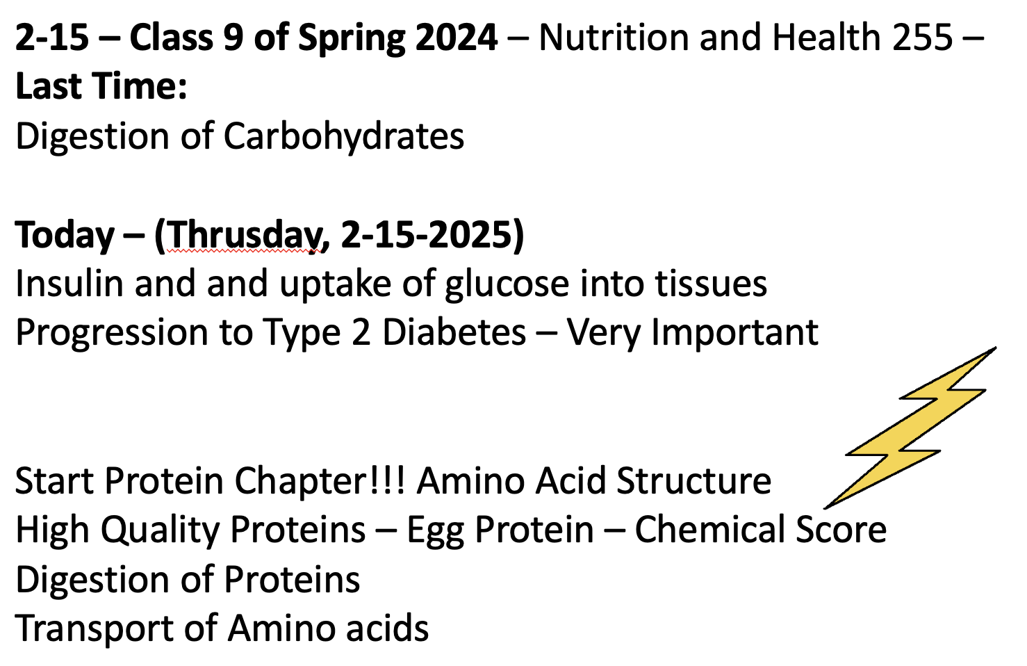 Class 9 – Nutrition and Health – Spring 2024 – February 15th – Start Protein – Chapter 5 in McGuire