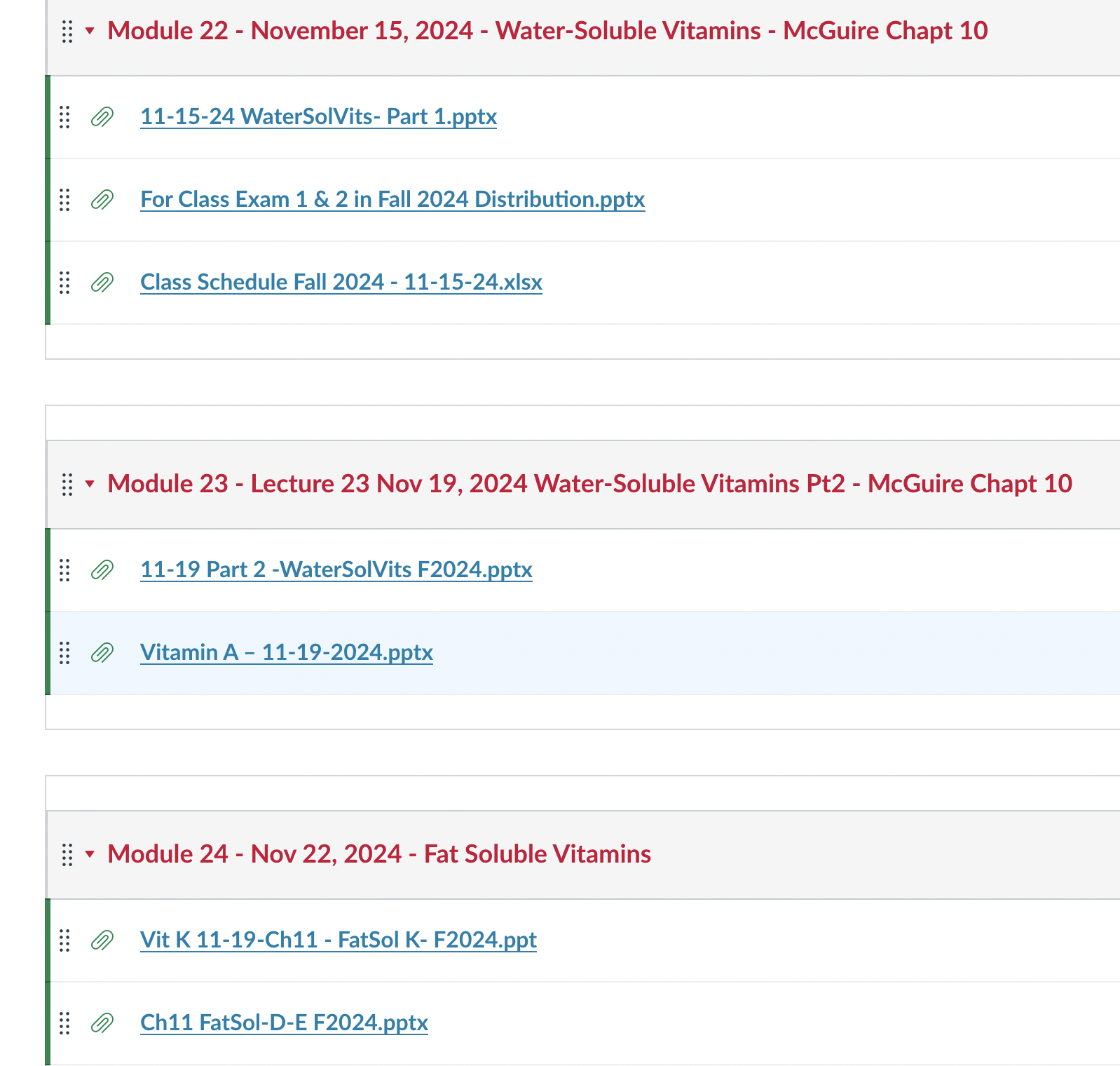 Class 23 – Nutrition and Health – Fall 2024 – November 19th – Water Soluble Vitamins – McGuire Chapter 10, Fat Soluble Vitamins – McGuire Chapter 11