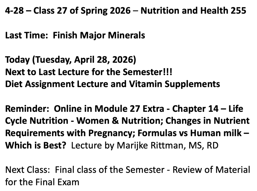 Lectures, Posts and Comments/Questions Relate to the Course: Nutrition and Health (709:255) at Rutgers University