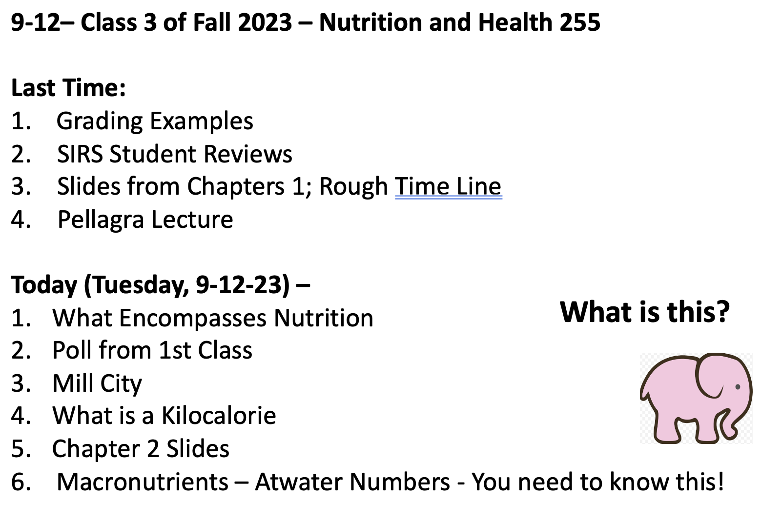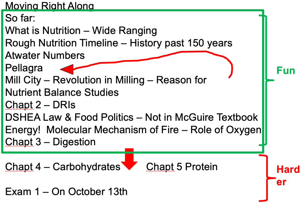 Class 5 – Nutrition and Health – Fall 2023 – Sept 19th – ONLINE – McGuire 3rd-4th Edition – Start Chapter 3 part 1 – Energy – where does it come from?