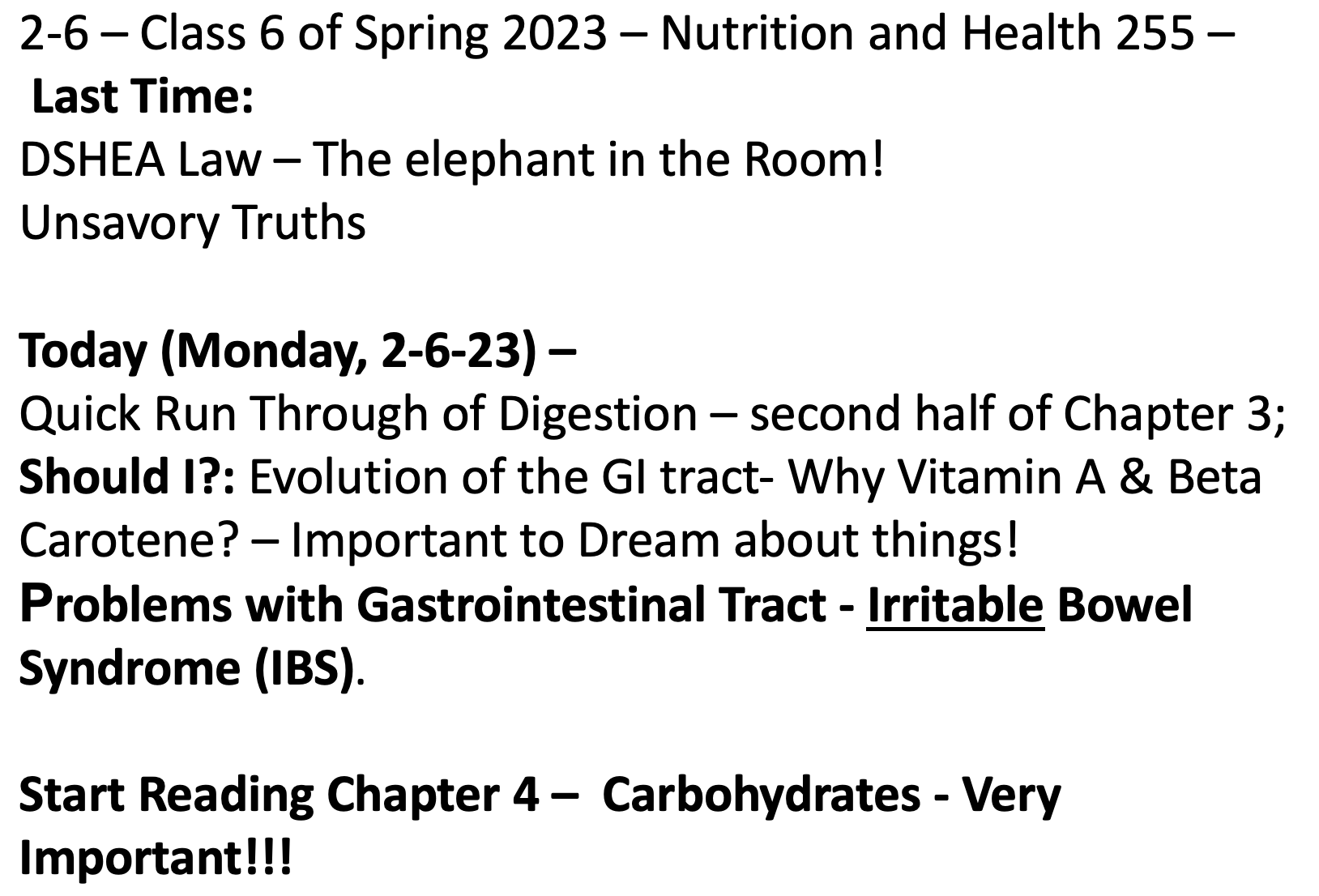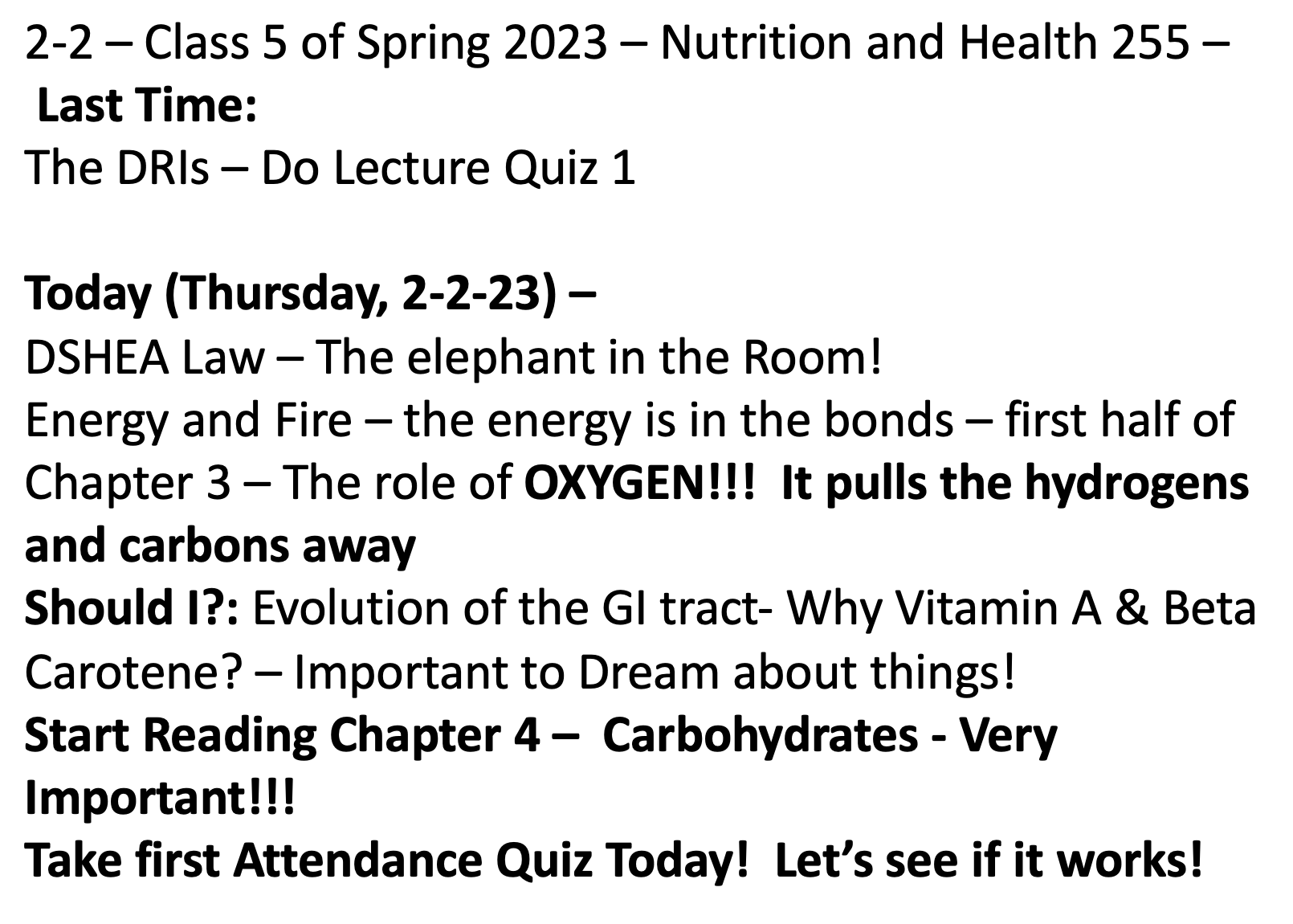 Class 5 – Nutrition and Health – Spring 2023 – February 2nd – Start Lecture on D’SHEA – Attendance Quiz on D’SHEA – The World of Misinformation – Start Chapter 3 in McGuire –