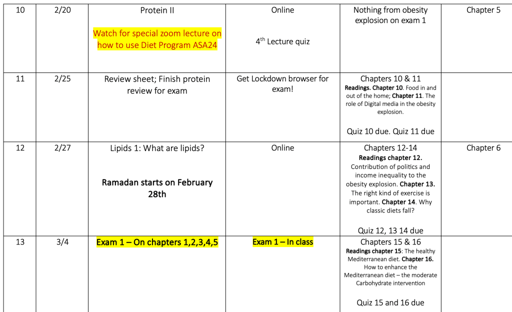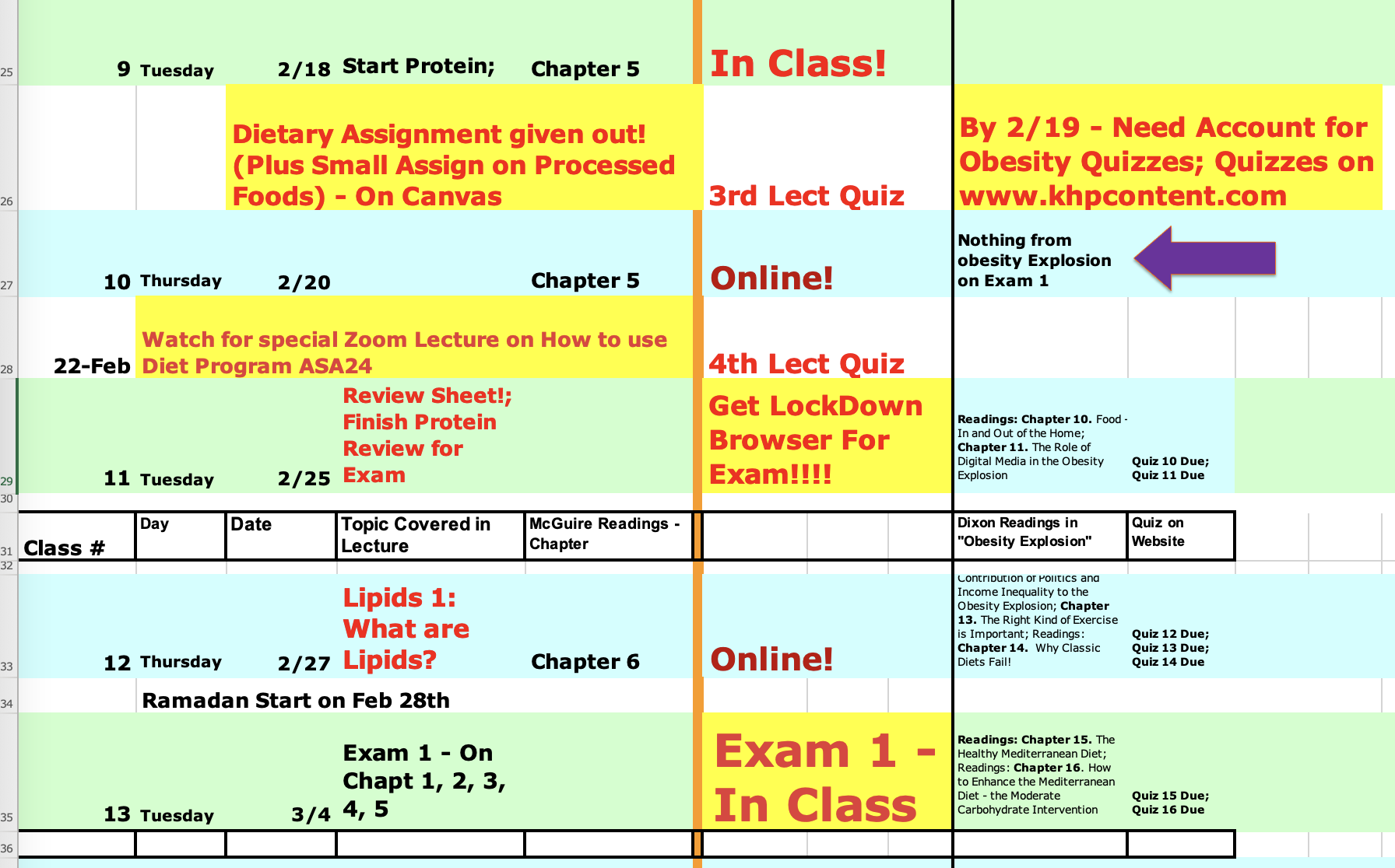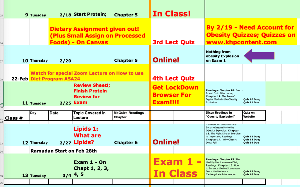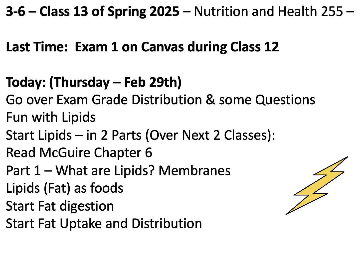 Class 12 – Nutrition and Health – Spring 2025 – February 27th – Chapter 5 in McGuire – Protein & Review for Exam 1