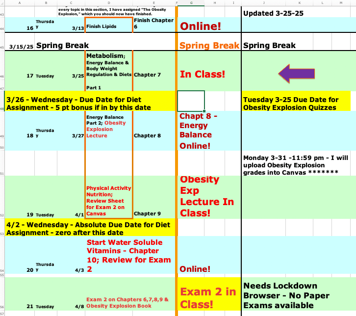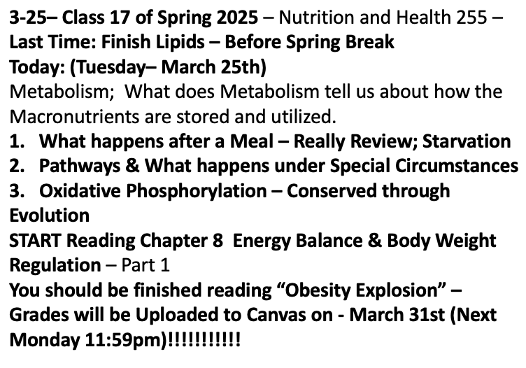 Class 17 – Nutrition and Health – Spring 2025 – March 25th – After Spring Break – Chapter 7 in McGuire – Metabolism – Why do we need to know this stuff?